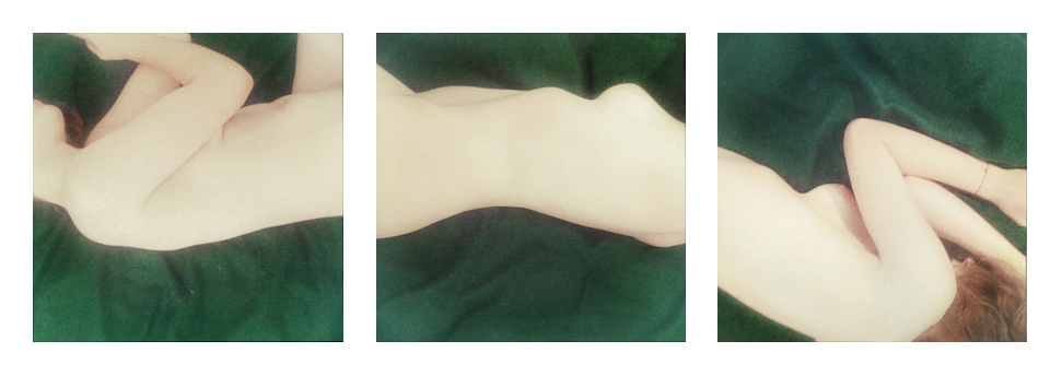 Nelle foto di Chiara Caselli Il corpo di Lydia, sua giovane e misteriosa modella, si insinua e scompone tra stoffe colorate e tessuto verde. Attrice versatile ed internazionale la Caselli da anni si dedica parallelamente alla fotografia. Dopo l’approdo nel 2011 alla Biennale d’Arte di Venezia e al Festival Internazionale di Fotografia di Roma, nell’ultimo anno ha tenuto due prestigiose mostre personali alla Palazzina Azzurra di San Benedetto del Tronto e all’Istituto Italiano di Cultura a Tokyo. Come una sequenza filmica, la fugacità e l’interruzione dell’immagine si mostrano ai nostri occhi attraverso il corpo nudo. Questo sotto una luce che ne dissolve i contrasti tonali e chiaroscurali sembra perdere la sua consistenza.